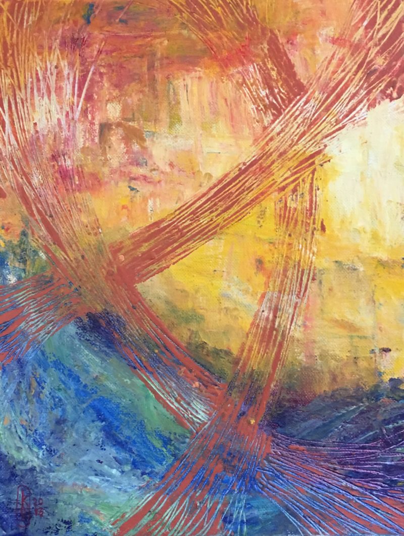 Oil with wax on canvas tryptic, each painting is 8″x10″